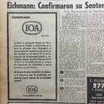 Destacamos as seguintes notícias sobre Adolf Eichmann, veiculadas pelo periódico: “La captura en la Argentina”, “Israel revela el diário del nazi Adolf Eichmann”, “Sórdido testemunio del nazi Eichmann”, “El jerarca nazi que dirigió el genocidio de los judíos”, “Eichmann nunca se arrepintió de nada” e “Los crudos testimonios en el gran juício”.